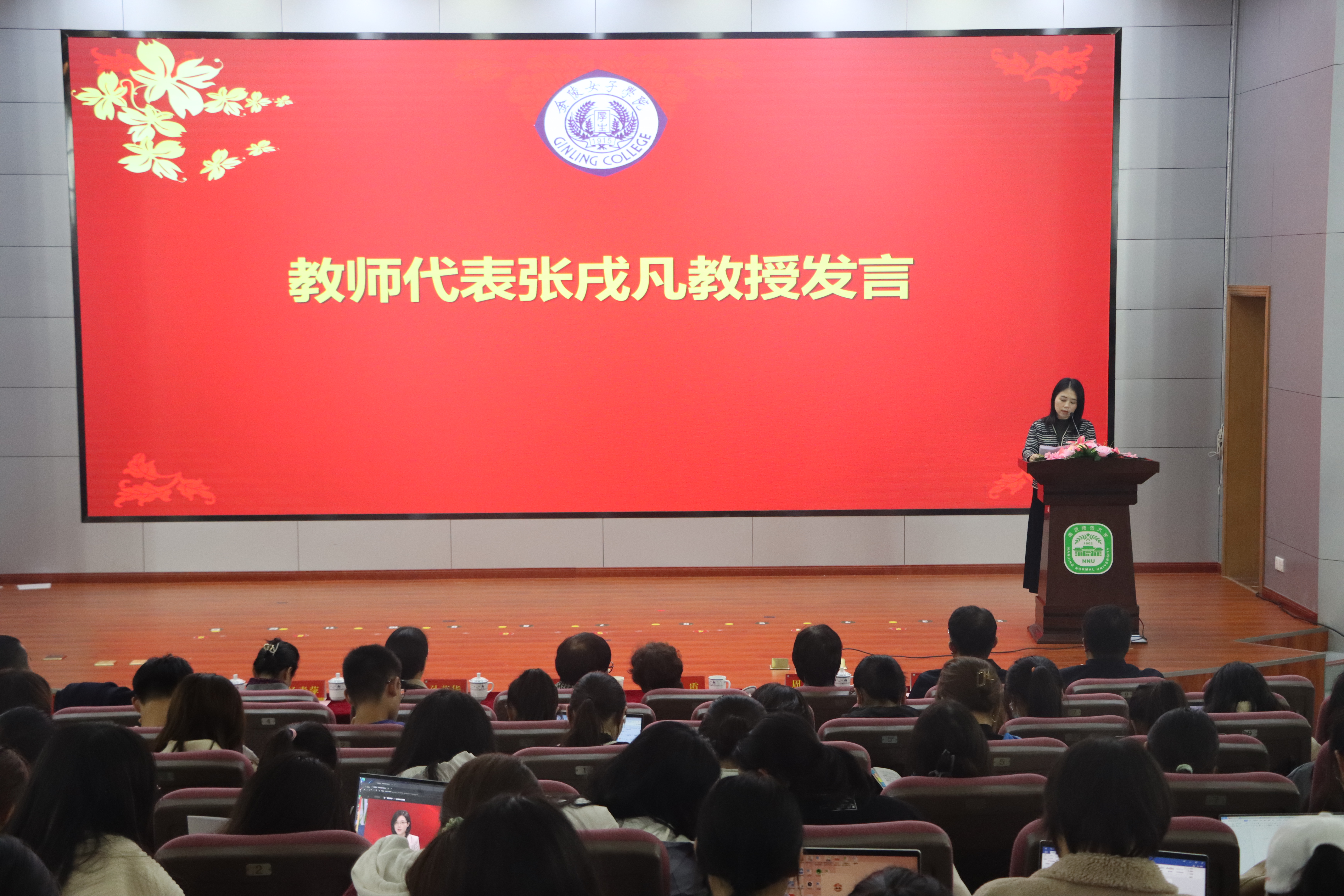 随后,教师代表张戌凡教授上台发言。她提到,通过课程的自由选择,组合成一张既具有专业挑战度,又符合自身兴趣的课表,是同学们走出贻芳书院时应当交上的一份精彩答卷。同时她也希望同学们在学习过程中筑牢学术根基,行稳致远,在埋头工作学习之余也要保持兼济天下的心态,最后她祝愿书院的学员们可以内外兼修,笃行不倦。
