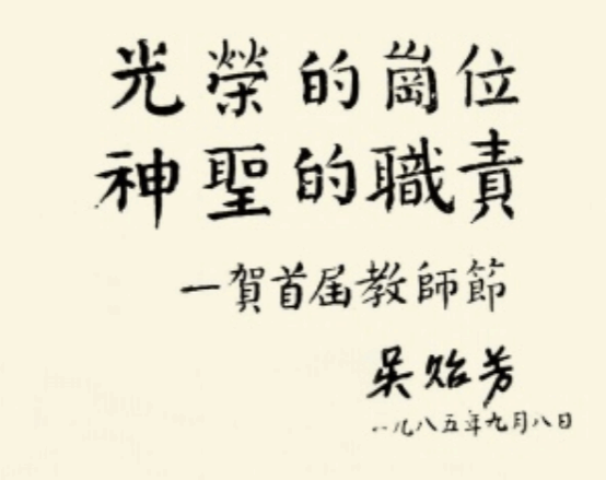 1985年8月28日上午,民进江苏省委暨南京市委在南京北极会堂隆重召开大会,庆祝新中国首届教师节。大会当天,吴贻芳先生坐在轮椅上,由医护人员推着出现在会场。与会的教师代表纷纷起立为这位老教育家热烈鼓掌,人群中还不时发出欢呼声。大家深切地体会到了她与广大教师的深厚感情。