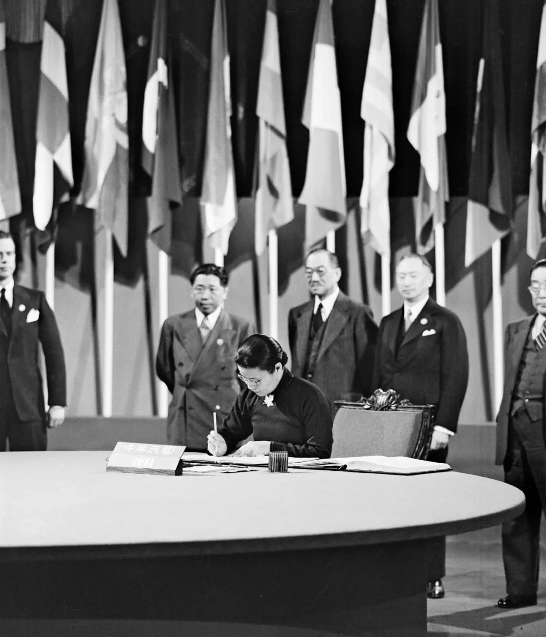 1945年吴贻芳在《联合国宪章》上签字