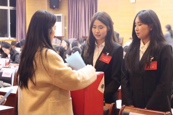 学生会主席团成员丁唐婧、研究生会主席团成员杨睿灵,各学院学生会、研究生会代表出席大会。金女院87名本研学生代表参加了本次会议。会议由洪培妍主持。
