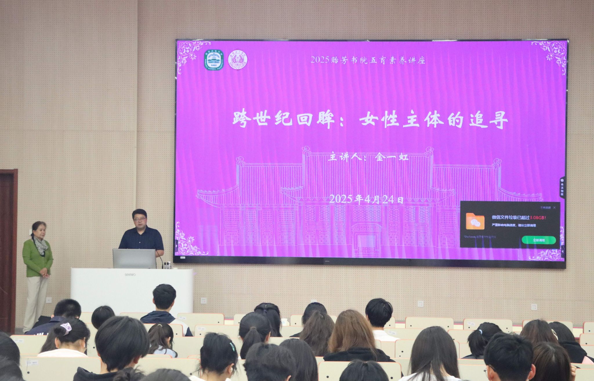 金一虹教授以“AI”技术的迅猛发展为切入点,探讨了其对传统职业、男女关系、家庭制度及未来社会结构的深远影响,强调了在发展变化的时代背景下,回顾历史、讲述故事的重要性。她指出,通过回顾历史脉络,同学们可以找到精神坐标,理解当下,并对未来进行理性规划,从而更好地应对未来的挑战。