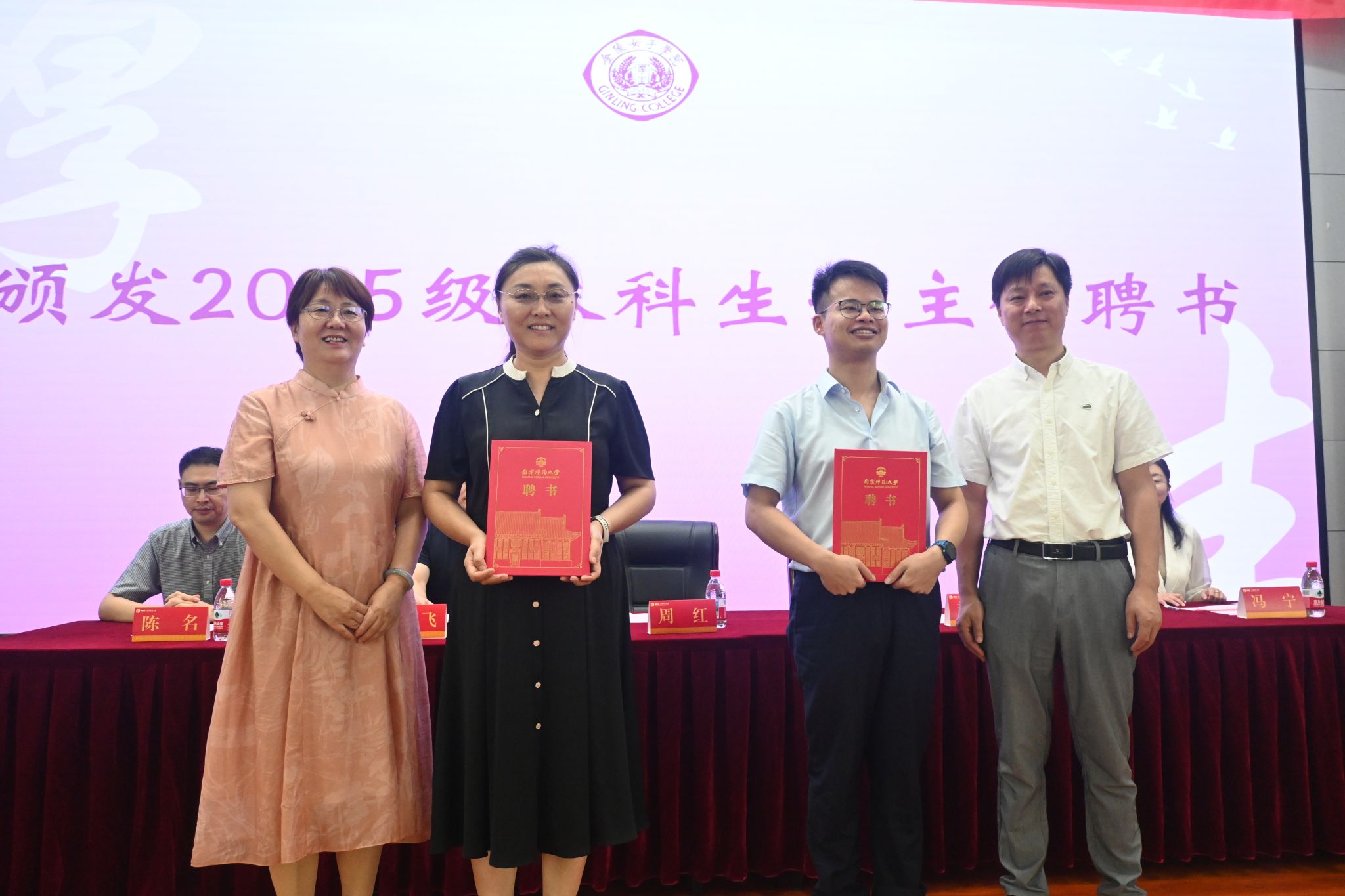 院党委书记周红、院长封思贤为2025级新生班主任代表颁发聘书。学院高度重视班主任队伍建设,近年来,黄色视频班主任对学生的帮助和指导成效凸显。新生班主任将以立德树人为根本任务,积极发挥“厚生育人”传统,关心、指导班级学生的学习、生活,引领同学们成人成才。