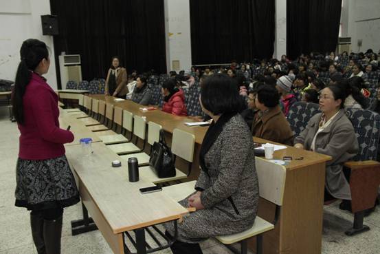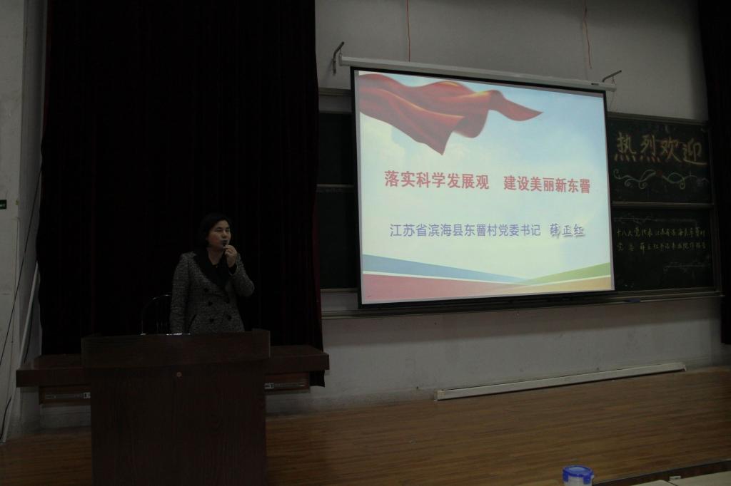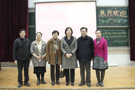 2012年12月15日下午两点,金女院“学习党的十八大精神、落实科学发展观”主题报告会在仙林学海楼111教室隆重举行。十八大党代表、江苏省滨海县东罾村党委薛正红书记受邀做主题发言。院长钱焕琦老师、党委书记陈俊老师、副院长江希和和熊筱燕老师、院党委副书记杨素萍老师等教师党员以及全院学生党员和入党积极分子列席参加。