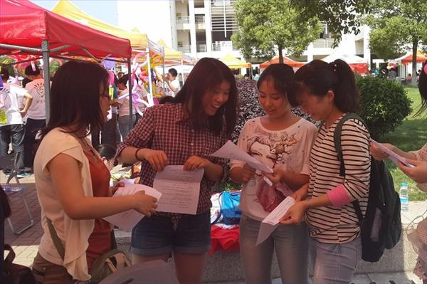 中午时分,活动还未开始,心站的成员们已积极地挂起了横幅、竖起了展板。经过各院心站成员的细心布置之后,活动便如火如荼地开始了。每个院的心站都推出了自己独具特色的活动,我们院更是推出了“光影流年 心影相随 感动我的电影瞬间专题展”、“心随笔动 收获心情手抄报专题展” 、“展露你的微笑,温暖你的心扉”——寻找最美丽的笑脸”三块展板,精致的展板吸引了众多路人的目光。此外我们院挤破气球答题的活动也受到了老师同学们的热烈欢迎。一张张印有题目的小纸条被巧妙地放置于气球之内,随着“啪”的一声,纸条也随之飞出。只要答对问题,就能获得糖果书签等奖品,奖品虽小却还是很是精致的。在活动过程中,不少老师和同学都心怀好奇地来参加了这次活动,来为同学们的活动加油打气,并对同学们的创意给予了肯定,指出活动中需要注意的问题,同时也对金女院这次的活动给予了肯定。