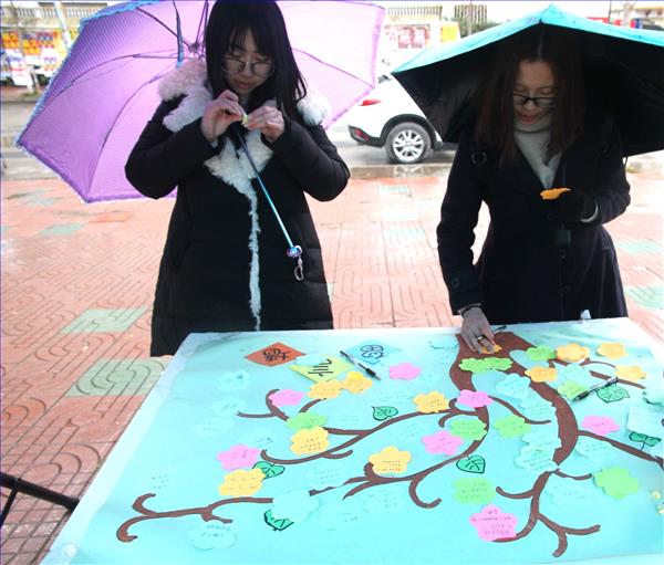 本次开幕式的游戏环节有趣新颖,游戏以收集线索贯穿始终,每完成一个游戏就可以得到一块碎片,全部收集之后可以拼成一颗大红色的爱心,正突出了本届女生节“蕙心”的主题。活动分为六个板块 “默契大考验” “心口不一” “你画我猜”“筷子夹乒乓球”“成语大接龙”等一系列游戏乐趣无穷。选手争分夺秒,努力思索,现场氛围热烈有趣,引得不少同学驻足观看。最后大家纷纷在便利贴上写上自己的心愿和祝福,将它贴在希望之树上,希望在新的一年所有美好的期许都会实现