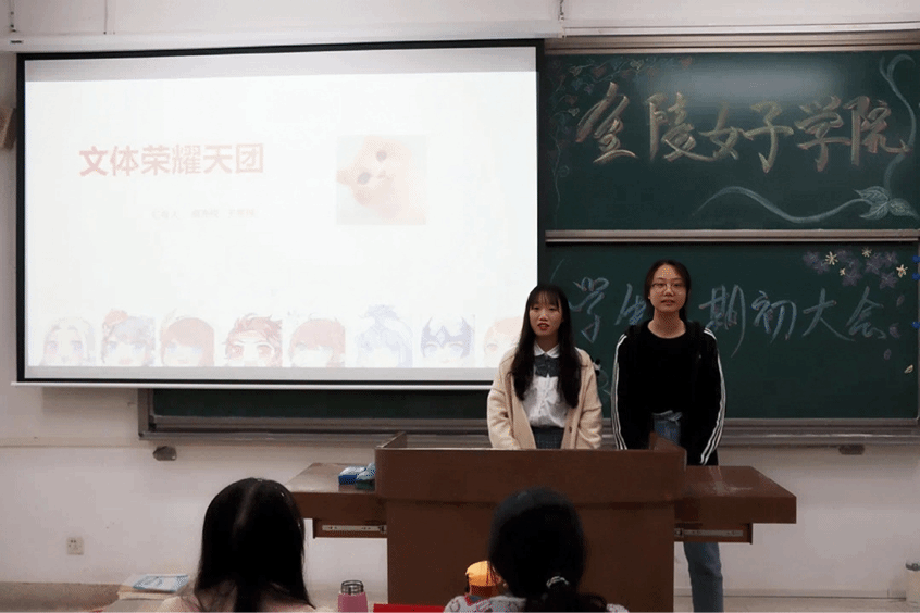 文体部将其成员比喻为王者荣耀天团,所有成员都模仿了一句王者荣耀中的英雄台词,在展示照片的同时播放出来,引得众人纷纷猜测他们所配音的是哪些英雄。新宣部展示了近期活动的摄影作品,板报设计等成果,还在成员介绍中加入了他们的座右铭,体现他们的生活态度与人生目标。外联部则贯穿着“可爱”一词宣讲,显示出外联部成员身上散发着的可爱气息。办公室和学科部有条不紊地梳理近期的工作和未来规划,也给新干事们真切的寄语,希望干事合心合力,共同建设更好的未来。此环节不仅让同学们对各部门的职责、特色与成员有了更多的了解,也打破了彼此间的隔阂,拉进了同学们的距离。