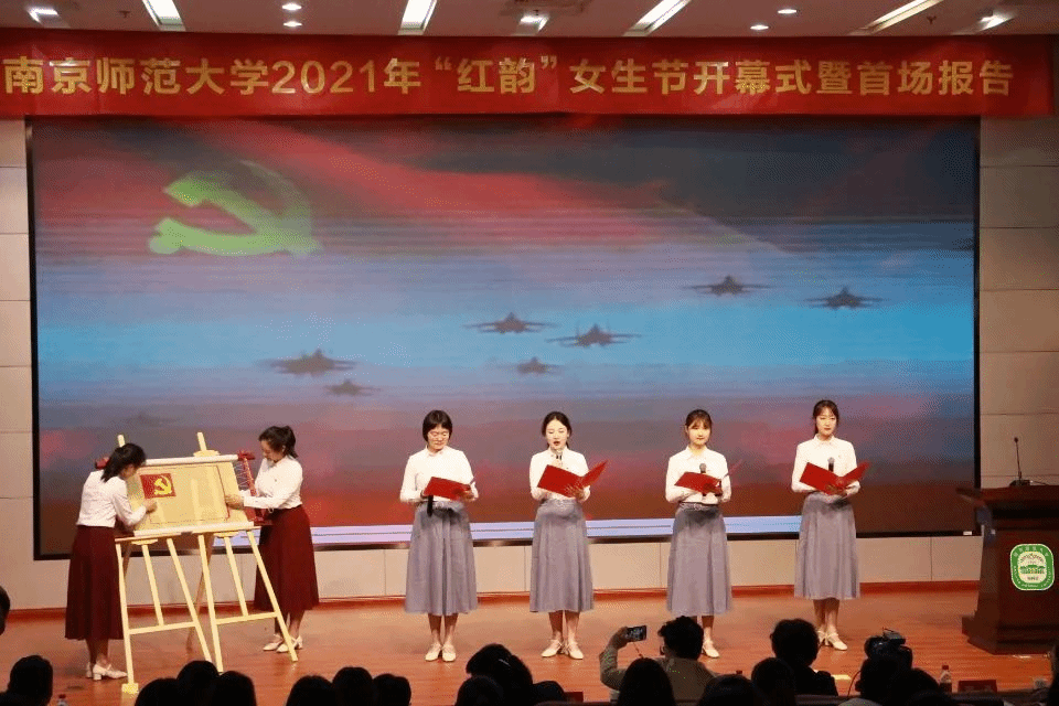 2021年“红韵”女生节开幕式暨首场报告在敬文图书馆隆重举行。陕西省妇联原副巡视员、陕西省志愿服务联合会会长班理,南京市妇联党组成员、市妇儿工委办主任王玉梅,校党委常委、组织部部长、统战部部长贲国栋,学生工作处(部)、党委研究生工作部、校团委、党委宣传部、教务处、金女院负责人出席活动。一同参与活动的还有南京市妇联红色巾帼志愿讲解团成员、雨花台烈士陵园讲解员,以及校先锋党校、青马班学员,各学院的学生代表、党员代表。