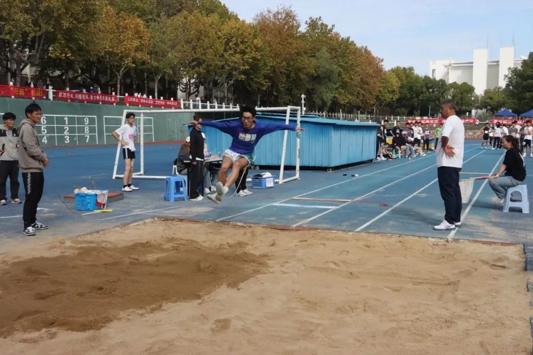 沙坑的脚印,是健儿们拼搏奋进的证明。在立定跳远项目中,金女院派出了洪培妍、谷依默、李嘉明等运动健儿参赛。选手们屏气凝神,从起跳处飞跃而出,而后稳稳落下。一道道优美的弧度,划过层层沙土,辉煌就铸在他的脚下。在激烈角逐后,李嘉明同学打破了校记录,获得了全校第五的好成绩。