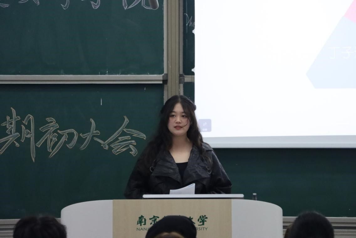 主席团成员李梓萍以自身在学生会的成长经历入题,提出“向下扎根,向上求索”的期望,鼓励同学们积极参与各项工作,在配合与交流中不懈探索、勇于创新、培养能力。