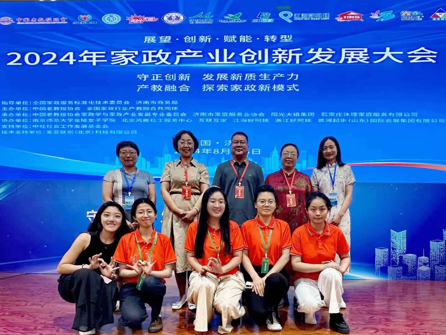 8月6-8日,2024年家政产业创新发展大会暨第九届全国商业服务业优秀店长大赛“未来之星家政店长”学生赛半决赛在山东济南全国家政服务标准化示范基地(阳光大姐)隆重举行。金女院党委书记薛传会,江苏省家政学会理事长赵媛教授,江苏家政发展研究院执行院长、江苏省家政学会秘书长熊筱燕教授,家政学教师赵丽芬博士及研究生一行参加大会。