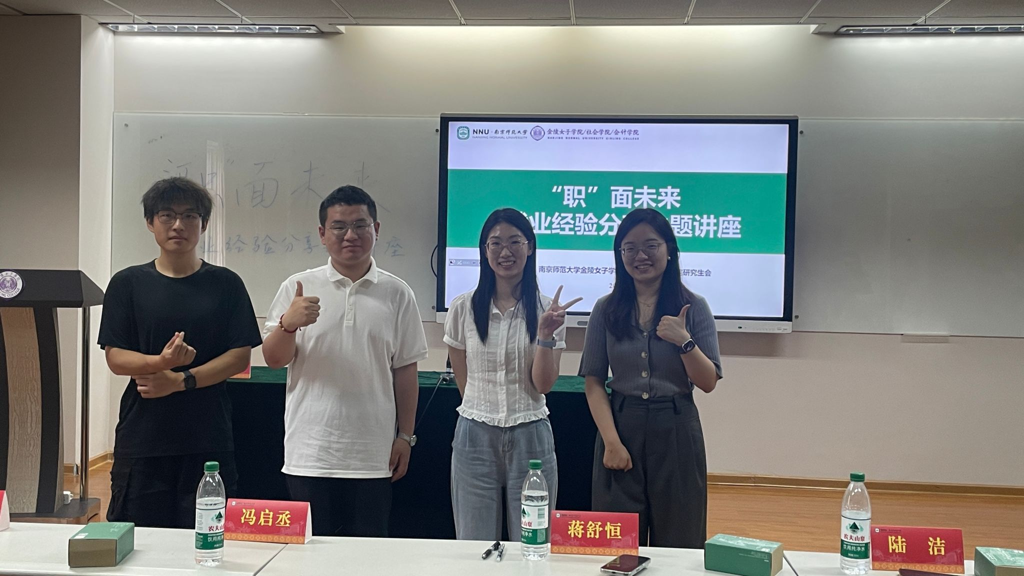 /社会学院/会计学院于2025年6月6日下午3点在逸夫楼416举办就业经验分享会。分享会邀请2022级四位优秀学子为同学们分享求职备考经验,以提升个人核心竞争力。本次活动由院研究生会文化实践部副部长张淑婷主持。