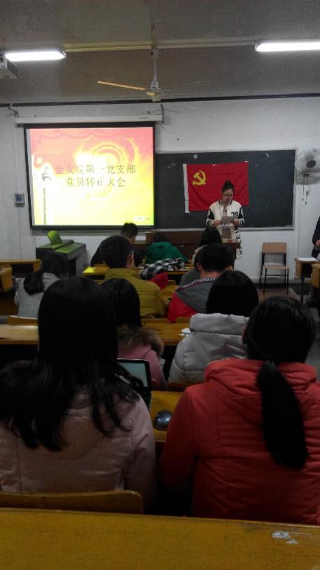 1223日晚,金女院第一党支部于随园校区北大楼201教室召开了党员发展大会,与会成员有支部中共正式党员11名,中共预备党员5名。本次大会由第一党支部书记王美菊同志主持,主要讨论吴梦亭、祁敏和曹慧珊三位预备党员的转正问题。