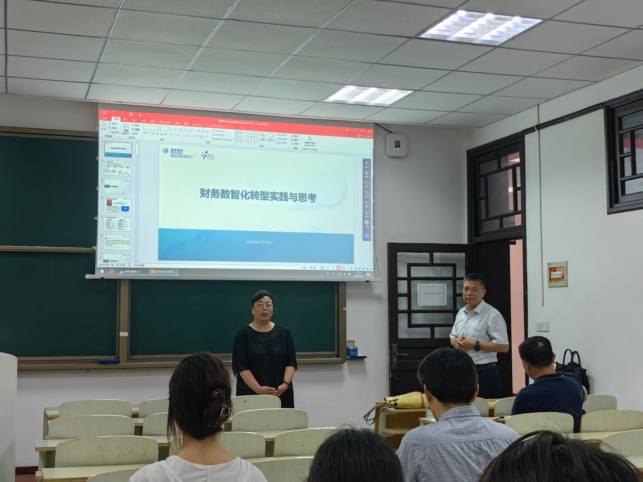 2024年6月14日下午,金女院在随园校区北大楼107教室成功举办了厚生讲坛第十期活动。本次讲坛主题为“财务数智化转型探索与实务”,由国网江苏省电力有限公司财务资产部副主任郑祥华高级会计师主讲。讲坛由熊筱燕教授主持,金女院特聘院长杨雄胜教授、会计与财务管理系教师、22级和23级研究生参加。