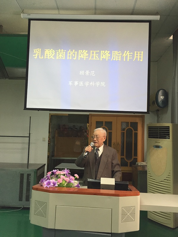 邀请著名营养学家、中国营养学会复会创建人之一、《(中国)营养学报》创刊及主编、“一代科技名师”顾景范教授受下午来校讲学,报告题目为“乳酸菌的降压降脂作用”。