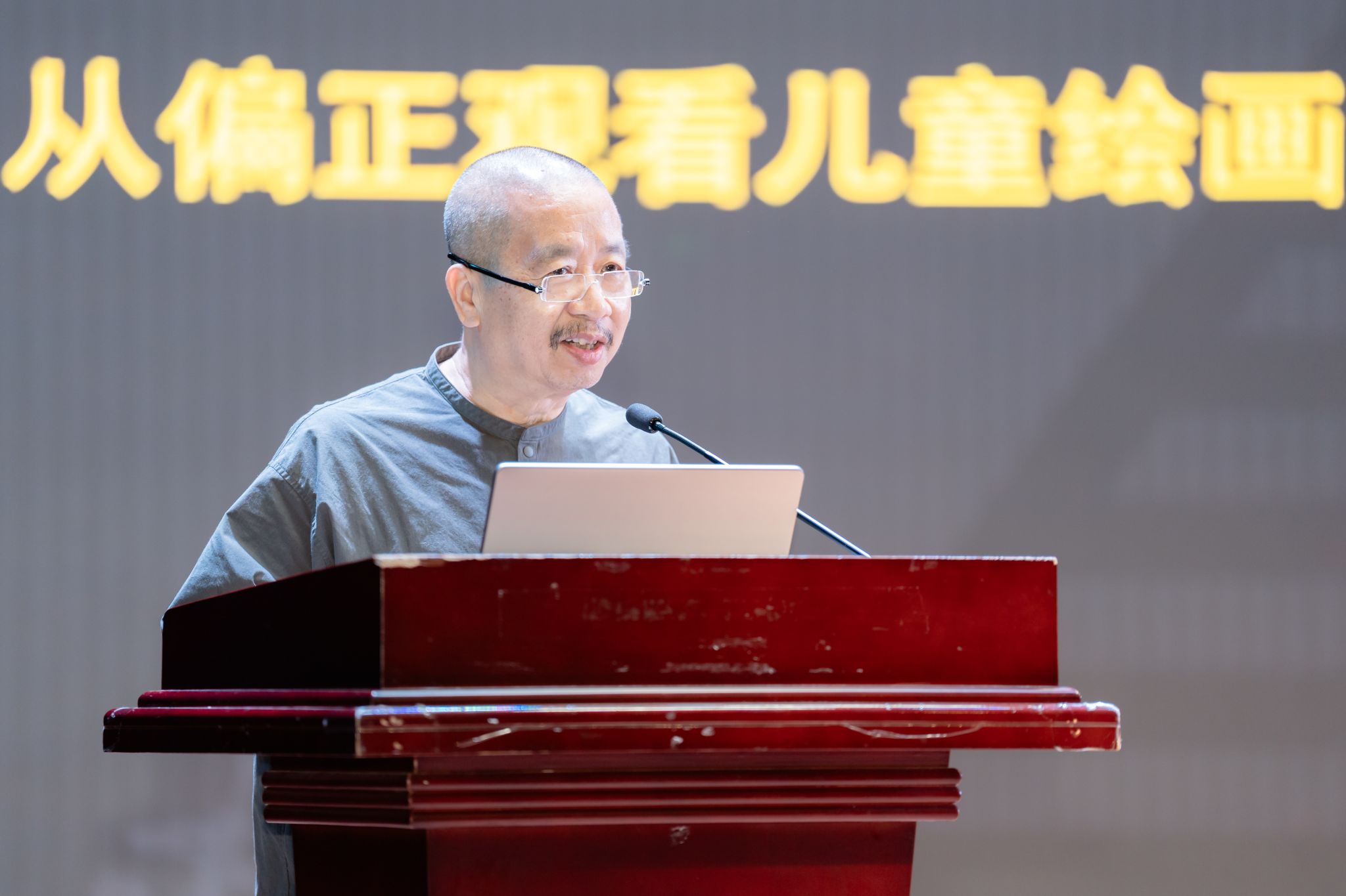 主旨报告二以《以偏正观看中国儿童画》为题,尹少淳教授通过内涵解读、生动案例展示,阐明儿童绘画本质是“偏”的创造性表达,但教育却惯常地一味意图引导其向表达规范的“正”发展。他强调儿童美术教育应践行趋“正”守“偏”的策略:既保护儿童天性的想象自由,又关注教师引导支持的重要价值,避免对某一方的绝对强调,在“偏正张力”中构建可持续发展路径。