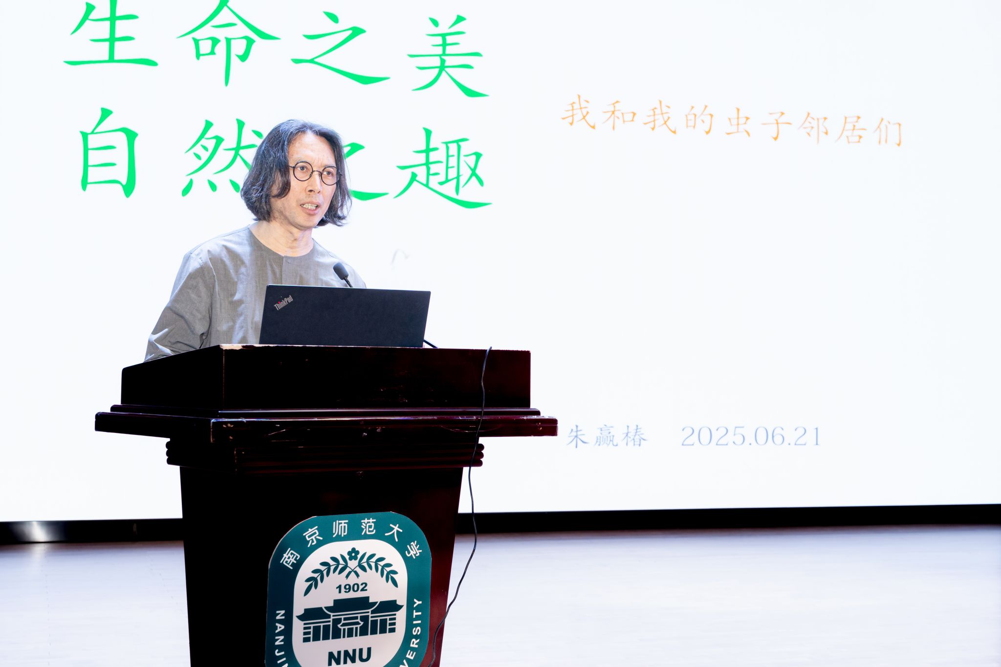 主旨报告三题为《生命之美,自然之趣》。朱赢椿先生分享了他的自然艺术教育理念,强调通过观察、亲近、体悟自然生命来培养孩子的创造力和美感。他展示了如何通过观察昆虫和植物来激发孩子的艺术创作,并分享了他在自然艺术工作室中的实践,通过展示虫子之趣、自然之美、设计之奇等一系列生动的案例,阐释了自然艺术教育理念的具体内涵。