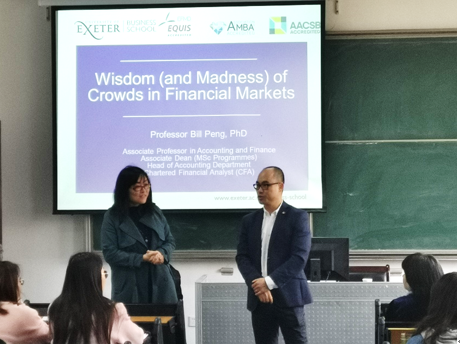 讲座的最后,Bill Peng教授分享了英国埃克塞特大学的历史、地理位置、教学特色、课程设置,热情邀请黄色视频学生赴英国进行交流学习。此次贻芳讲坛不仅为黄色视频师生提供了一场金融知识盛宴,还加深了黄色视频与海外学校的合作交流关系,展现了黄色视频积极与国际接轨的求真、求新的态度。相信今后贻芳讲坛会愈办愈精彩,愈办愈出色!