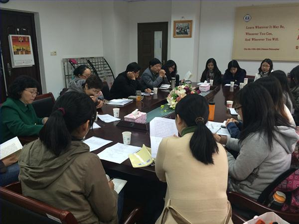 随园校区进行了关于学习《习近平总书记系列重要讲话读本》的交流会。本次交流会是金女院2014年主题教育活动——“手拉手、面对面、心连心”金女院教工党支部与学生党支部结对共建活动的子活动之一,交流会由教工三党支部书记彭薇老师主持。参加交流会的教工与学生党员来自劳动与社会保障、食品与英语