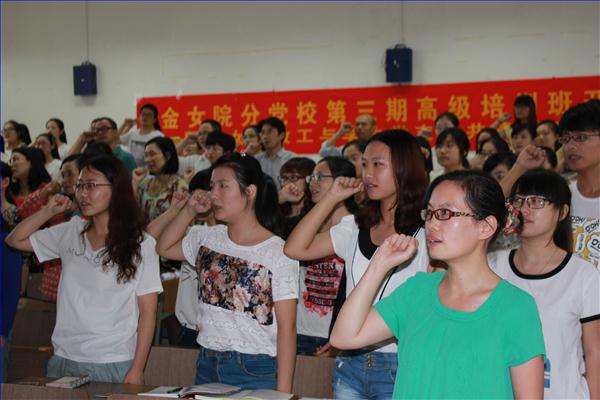在《国际歌》庄严浑厚的音乐中,金女院分党校第三期高级培训班开班典礼正式拉开帷幕。金女院党委书记江希和老师为第三期高级党校培训班的全体学生党员做了热情洋溢而语重心长的开班动员,江老师分析了当前学生党员队伍存在的奉献意识不强、群众意识薄弱、重个体成长轻集体进步等现象,指出了学生党员不断追求进步、完善自我、增强党员意识的重要性和方向,并希望广大学生党员在高级培训班中,努力学习,勤于思考,理论联系实践,不断提高共产党员的党性修养和思想境界,为社会进步和国家发展做出积极的贡献。