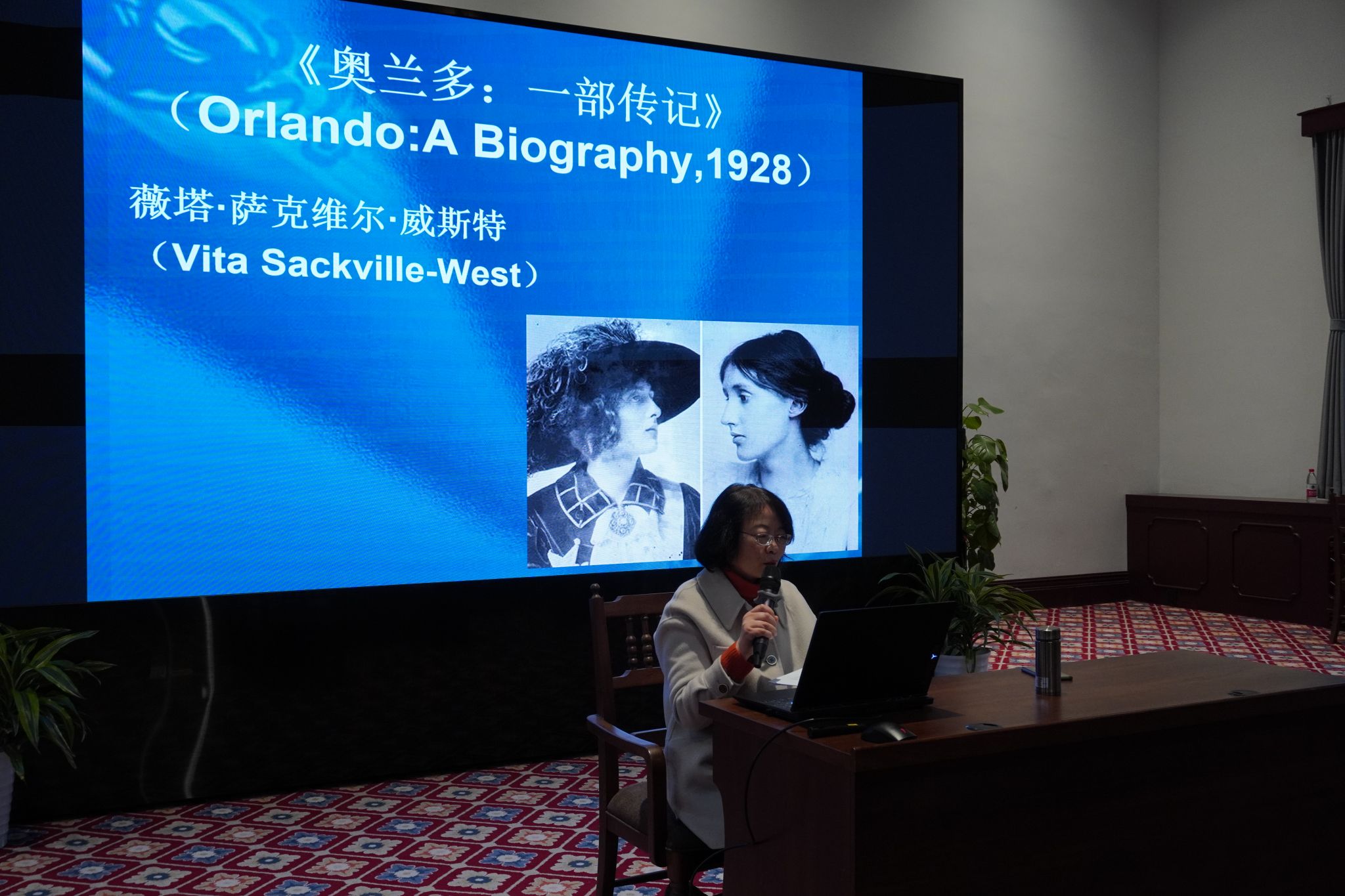 文学院博士生导师杨莉馨教授来分享关于伍尔夫《奥兰多》与《一间自己的房间》的互文解读,并与在场的学生进行文学思想的对话。
