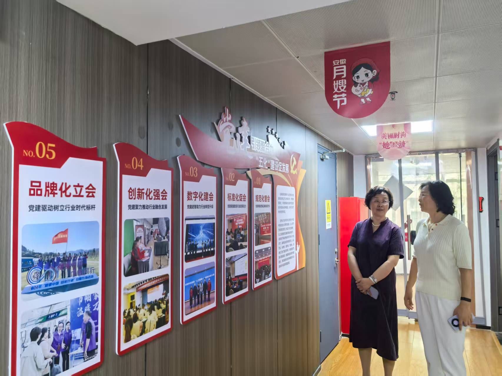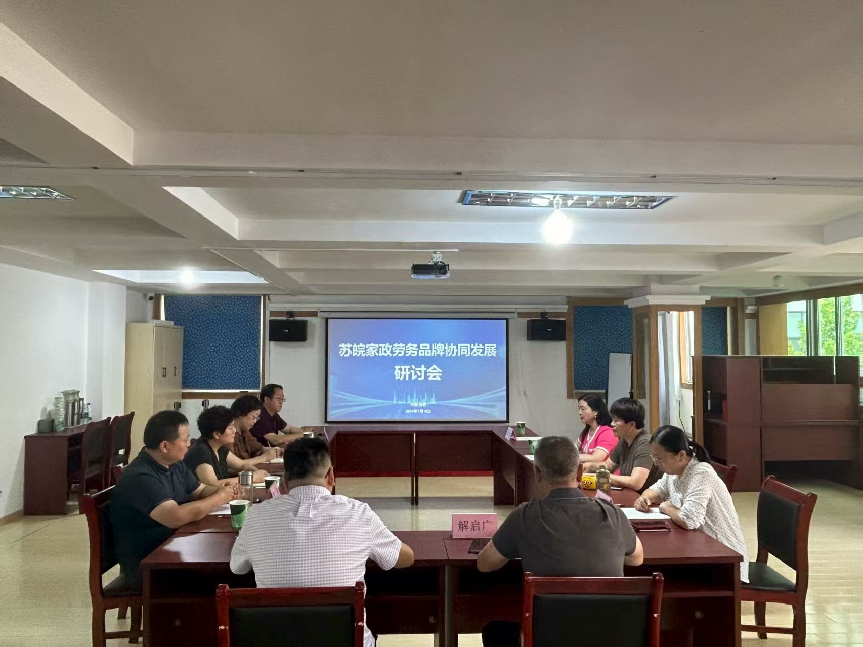 随后,调研组赴安徽省家庭服务业协会座谈,安徽省家庭服务业协会会长林清、秘书长江芳等出席座谈会,双方围绕家政行业劳模创新工作室建设、家政劳务品牌建设等进行了深入交流。
