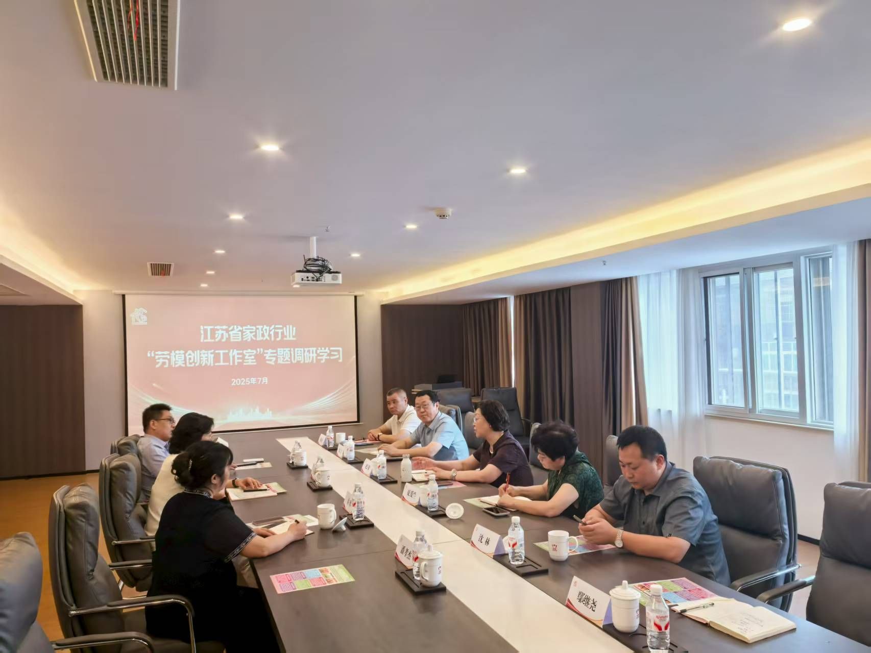 2025年7月16-17日,江苏省家政学会理事长赵媛教授、秘书鄢继尧老师,南京市家庭服务业协会会长、南京快易洁家政服务有限公司(以下简称“快易洁”)党支部书记夏爱兰,快易洁集团负责人夏宁、沈林、解启广一行围绕家政行业劳模创新工作室建设、家政劳务品牌打造、家政高质量发展等赴安徽合肥调研。
