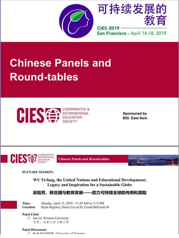 全美比较与国际教育学会(CIES)2019年会于4月14-18日在旧金山召开。这次年会的主题是可持续发展的教育。为了纪念联合国宪章签署74周年,中国是宪章签署国,旧金山又是美国华人聚集重镇,CIES特别预订了宪章签署原址赫布斯特大剧院召开纪念主旨大会,并且在同场举办吴贻芳专题研讨会,纪念她作为签署联合国宪章中国唯一女性代表、中国大学女校长、及中美教育与学术交流推动者。专题会的主题名为“吴贻芳、联合国与教育发展~助力可持续全球的传奇和激励”。