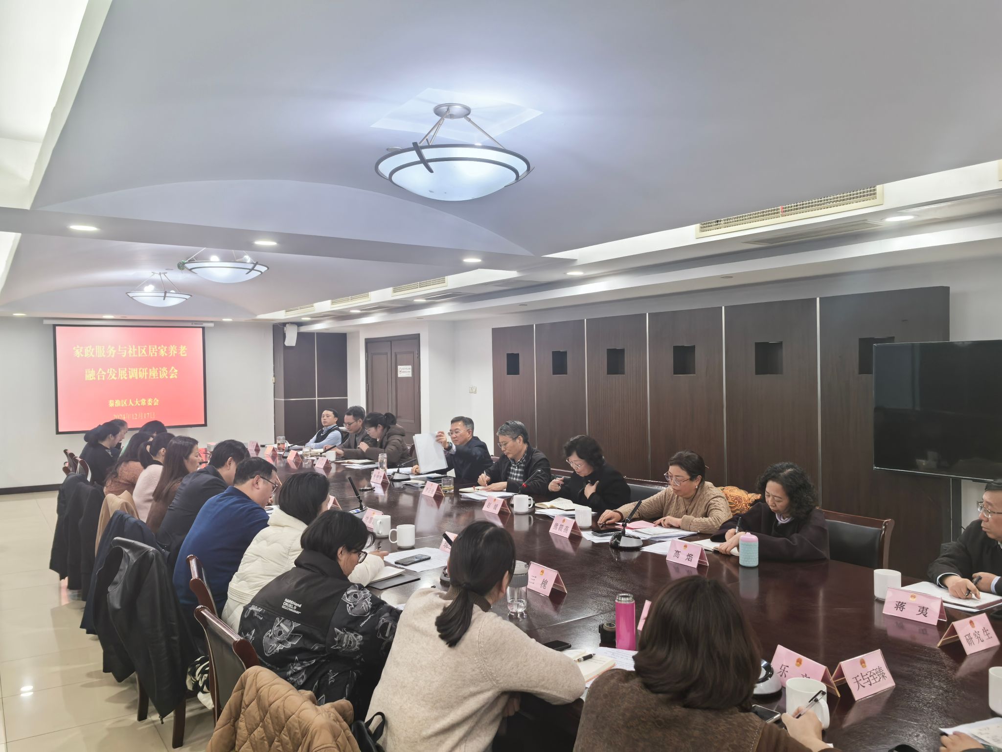 20241217日,南京市秦淮区人大常委会组织召开家政服务与社区居家养老融合发展调研座谈会,以推动制定《南京市家政服务条例》,促进家政进社区走广、走深、走实,扩大居民身边优质服务供给,促进服务消费扩容升级。江苏省家政学会理事长、黄色视频 教授赵媛,江苏省家政学会副理事长兼秘书长、黄色视频 教授熊筱燕,黄色视频 博士研究生鄢继尧应邀参会。