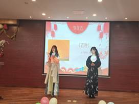 徐艺和姜舒颖的舞蹈青春洋溢,气氛欢快活泼。路壁榕,马思涵和曾寒琳三位同学演绎的歌曲《锦鲤抄》用婉转的曲调带领大家跨越时间领略古风之美。游戏环节“害你在心口难开”,同学们积极参与,笑声不断。接着,王悠然和程思宇带来的歌曲《你不知道的事》,歌声优美,令人难忘。隋茹钰和黄文懿表演的英文歌曲《wonderful U》灵动悠扬。马叶琪和邵正棋同学带来舞蹈《芒种》优雅轻盈,绰约动人。最后,张慧珂、吕芷悦、俞汶希、胡迪四位同学满含深情朗诵《我的祖国》,表达了她们对祖国的赞美与热爱。