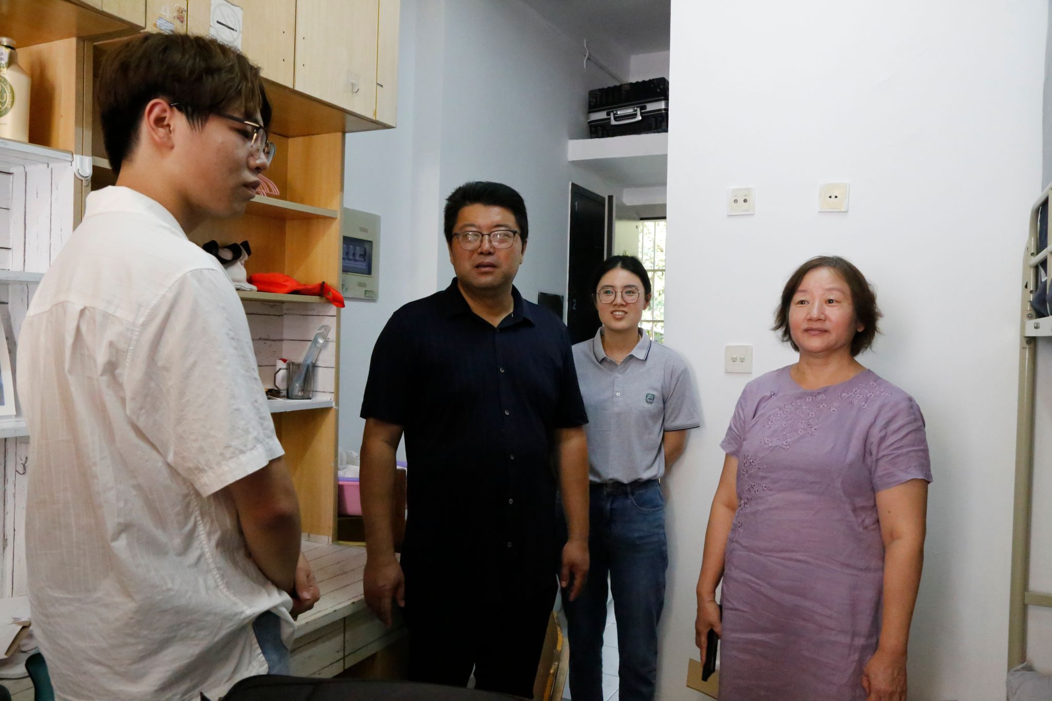 当天,金女院党委书记薛传会,院长边霞,院党委副书记高见,副院长封思贤,院团委书记、研究生辅导员冯宁,本科新生辅导员李凡程深入本研新生宿舍,与他们亲切交谈,了解新生入住情况,畅谈即将开启的美好校园生活,并介绍了学院办学和育人特色,勉励大家在学习、科研和个人发展上勇于创新,追求卓越。同学们纷纷表示,在入校的首日就得到了学院领导老师、学长学姐们的真挚关怀和热心服务,增强了他们对于大学生活的美好期待。