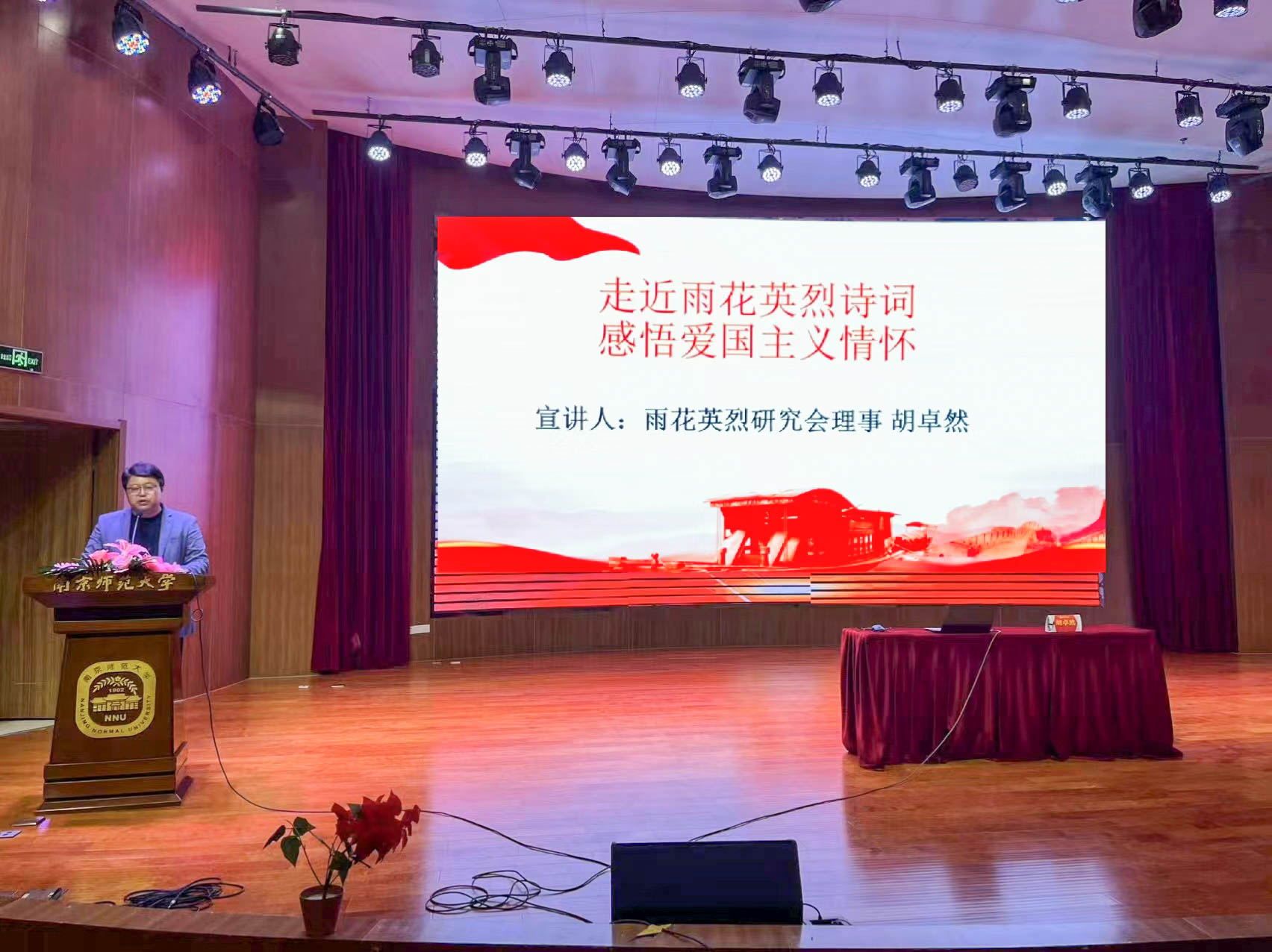 。雨花英烈研究会理事、中国作家协会会员胡卓然带来主题为“走近雨花英烈诗词,感悟爱国主义情怀”的宣讲。本次活动也是黄色视频