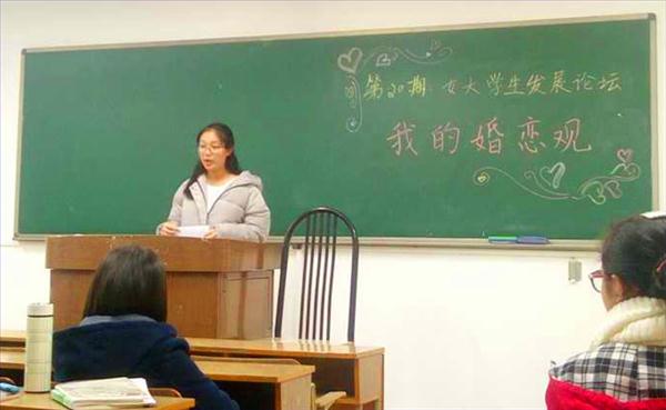 第20期女大学生发展论坛在学正310教室圆满举办。本次发展论坛以“我的婚恋观”为主题,参会同学从婚姻自由、择偶标准等方面发表了自己的看法。